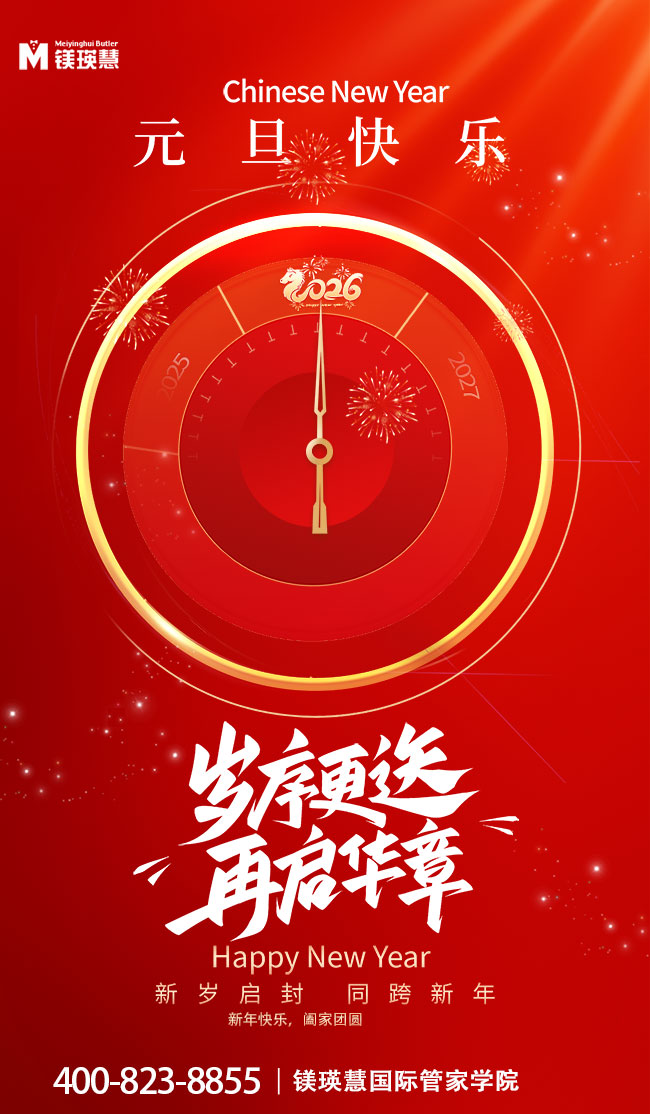 值此2026年元旦佳节来临之际,镁瑛慧国际管家学院谨向您及家人致以最诚挚的新年祝福!